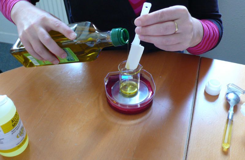 (Et hop, on utilise la maryse pour guider l'huile et la faire couler sans en mettre partout !)