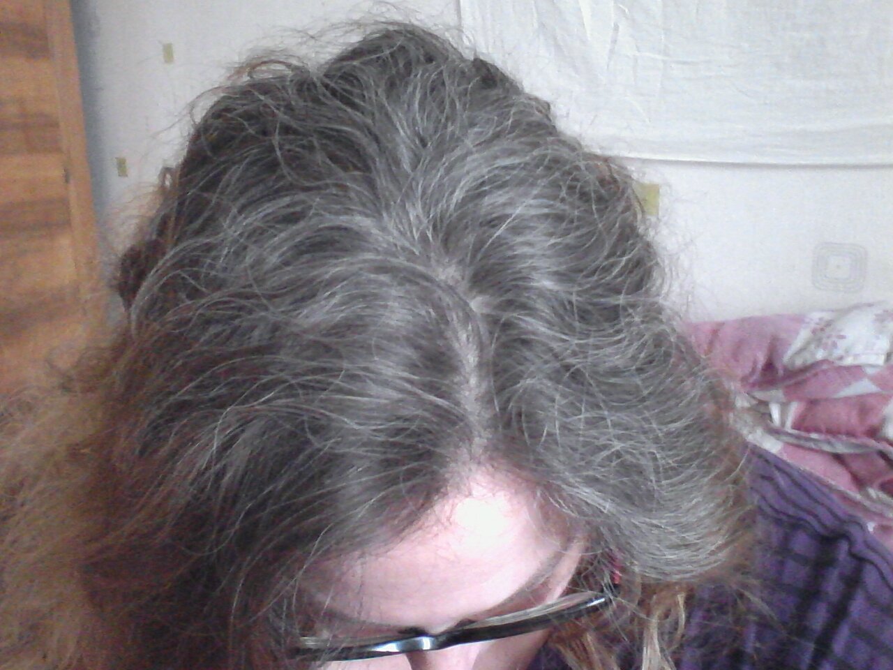 Finalement, passé les premiers mois, c'est plutôt facile et pour la première fois depuis 25 ans, je vois mes "vrais" cheveux ! J'avais oublié leur couleur, enfin ce qu'il reste de couleur car comme vous allez le voir sur les photos, ma repousse est très blanche !!! À bientôt pour la suite, de plus en plus givrée ! Et merci à toutes pour les témoignages, c'est bizarre mais ça fait du bien de se sentir soutenue !